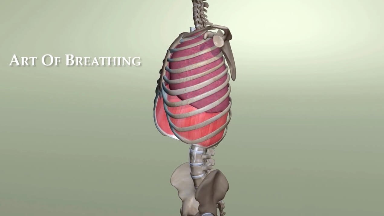 A 10-minute video animation from Jessica Wolf that demonstrates the various layers of normal, natural breathing, including the various layers and groups of muscles; spine, ribs, and other skeletal structures; the diaphragm; and connective and supportive tissues